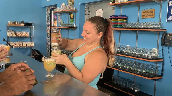The brewery still takes on many characteristics of a home with rocking chairs on the front porch before entering a front door that resembles your own. To the right, a brick building stands where you can see the five fermenters and two conditioning tanks they use as well as a backyard perfect for events.